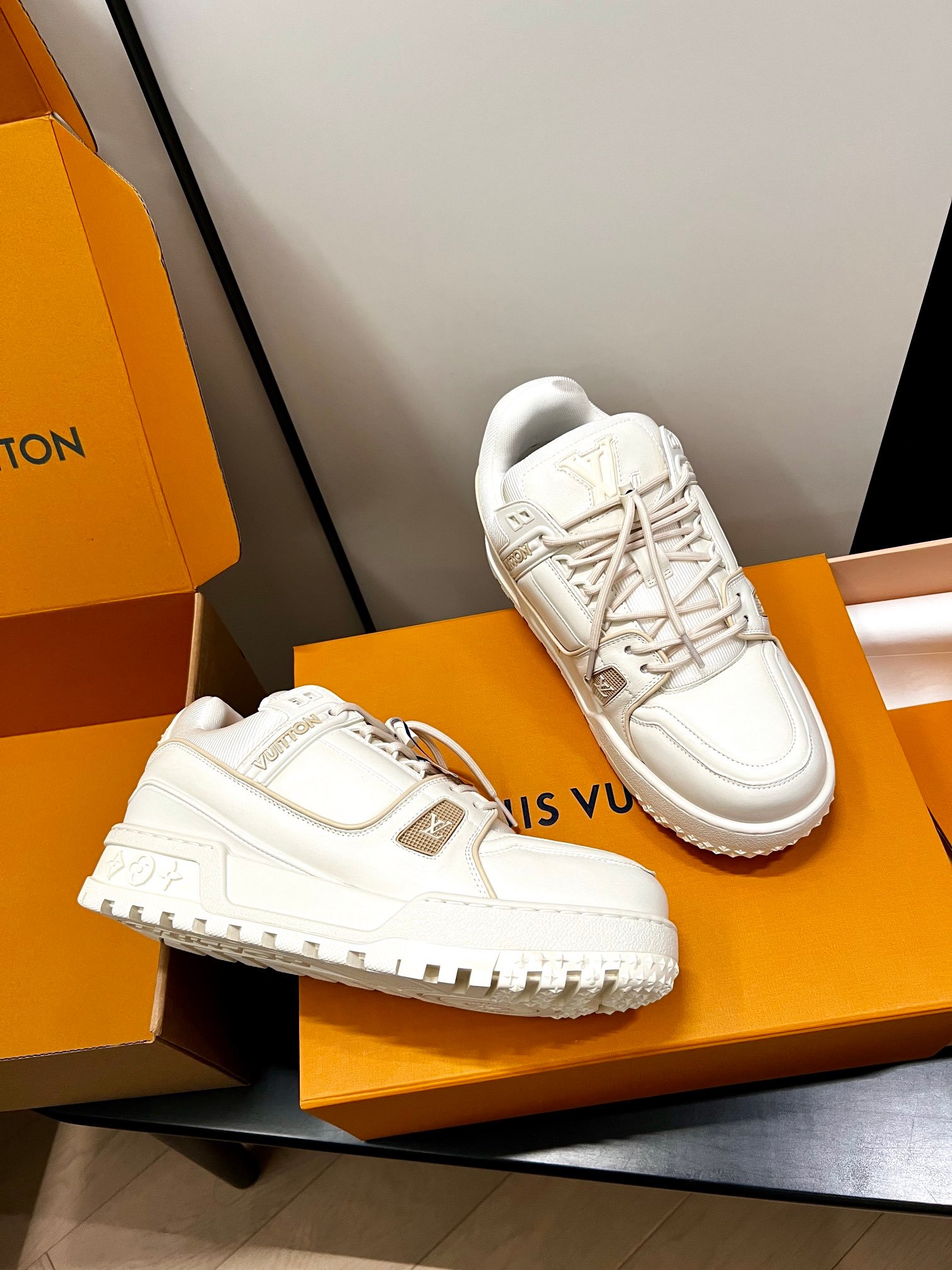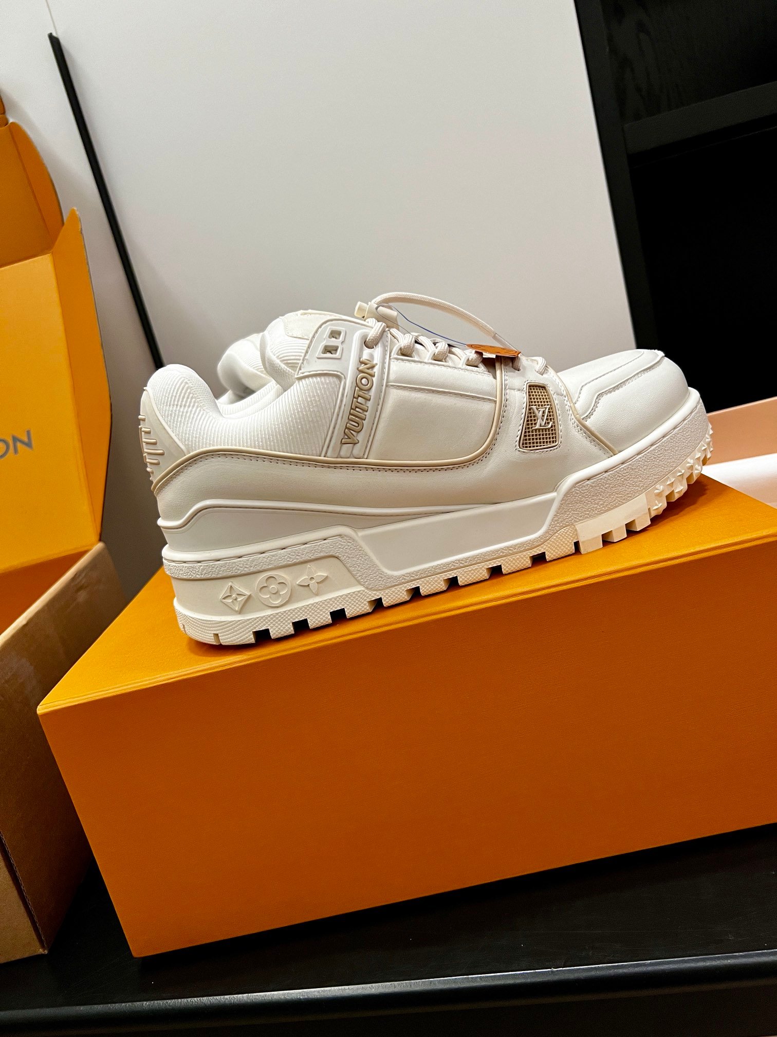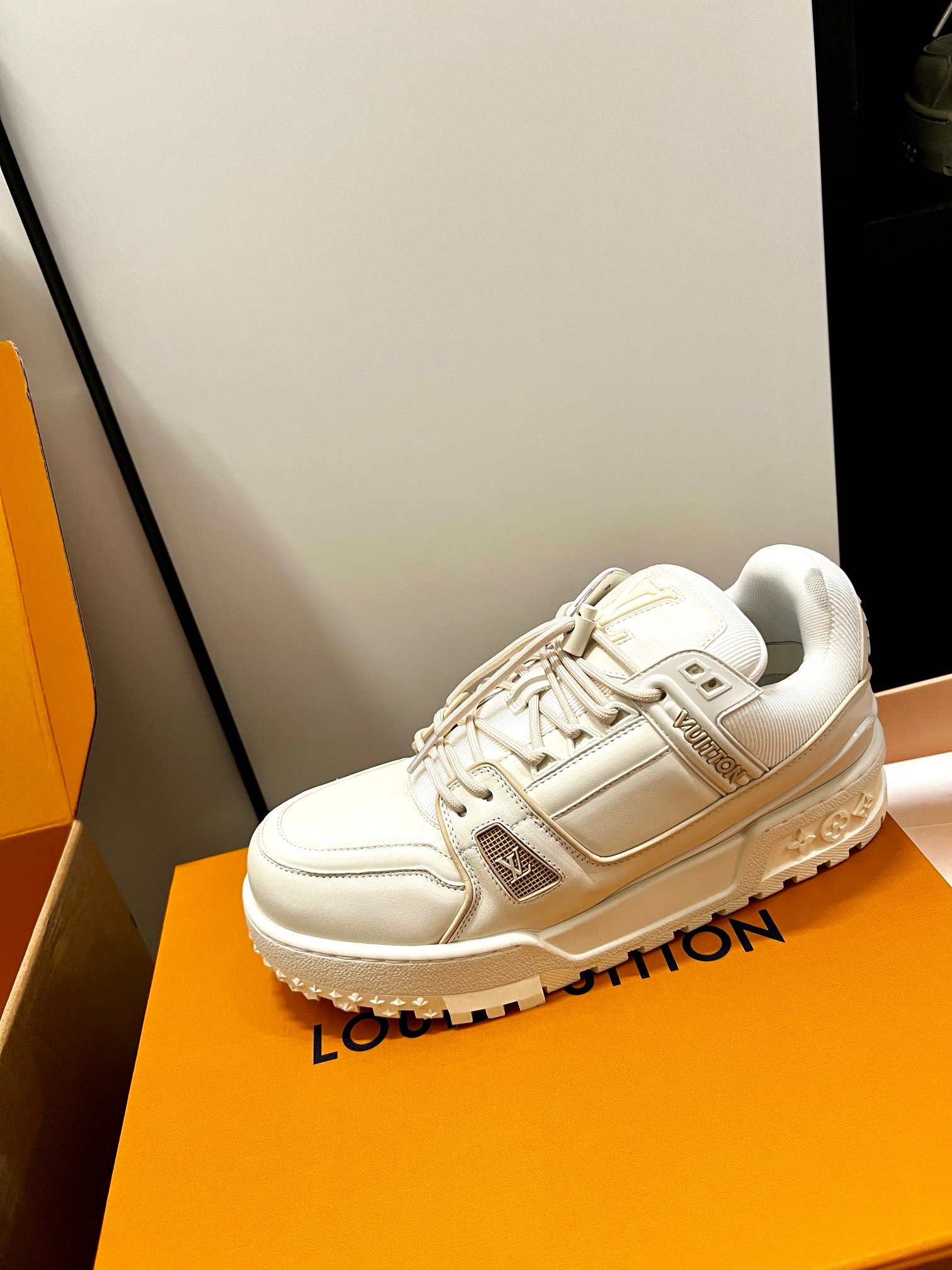 Louis Vuitton Spring Collection runway outfit inspiration: Does the “extra-large” LV Trainer look cooler? #Top version, invincible, exclusive custom model with high-cost crafted shoe embellishments, genuine chunky “fat” exclusive DIY shoe fun!! [Genuine anti-counterfeit chip]