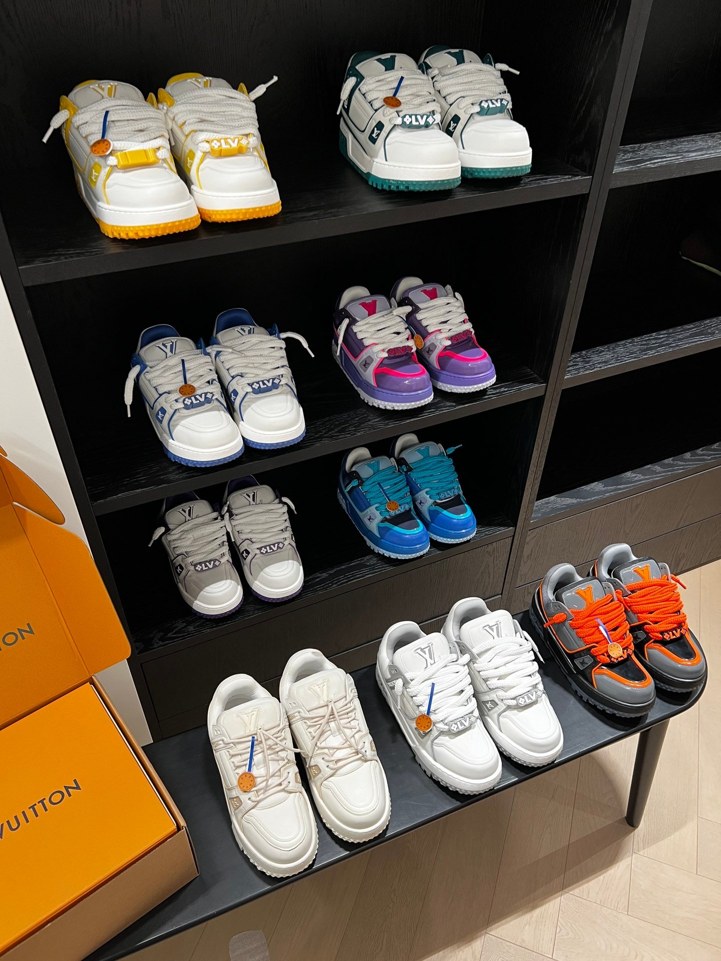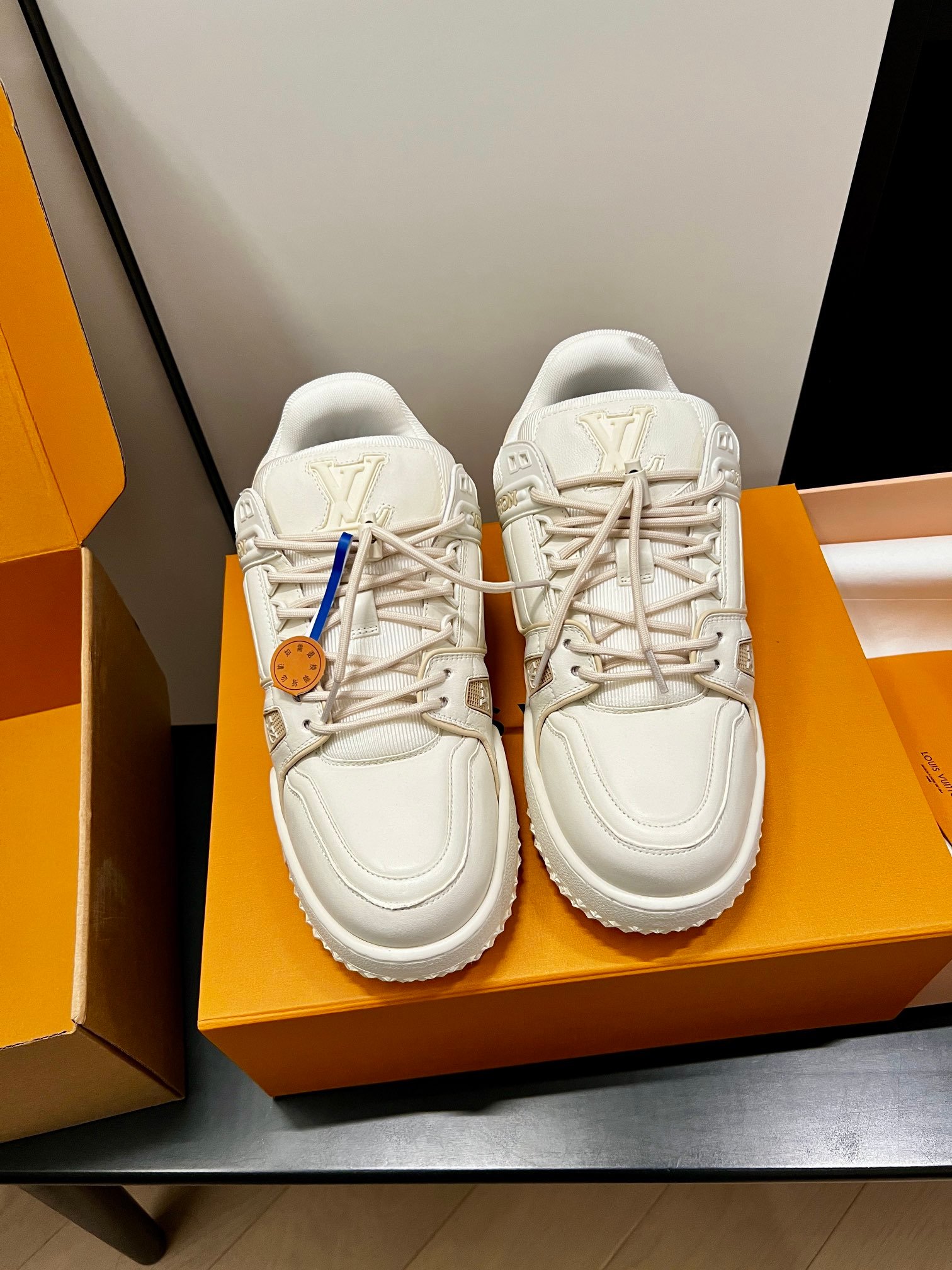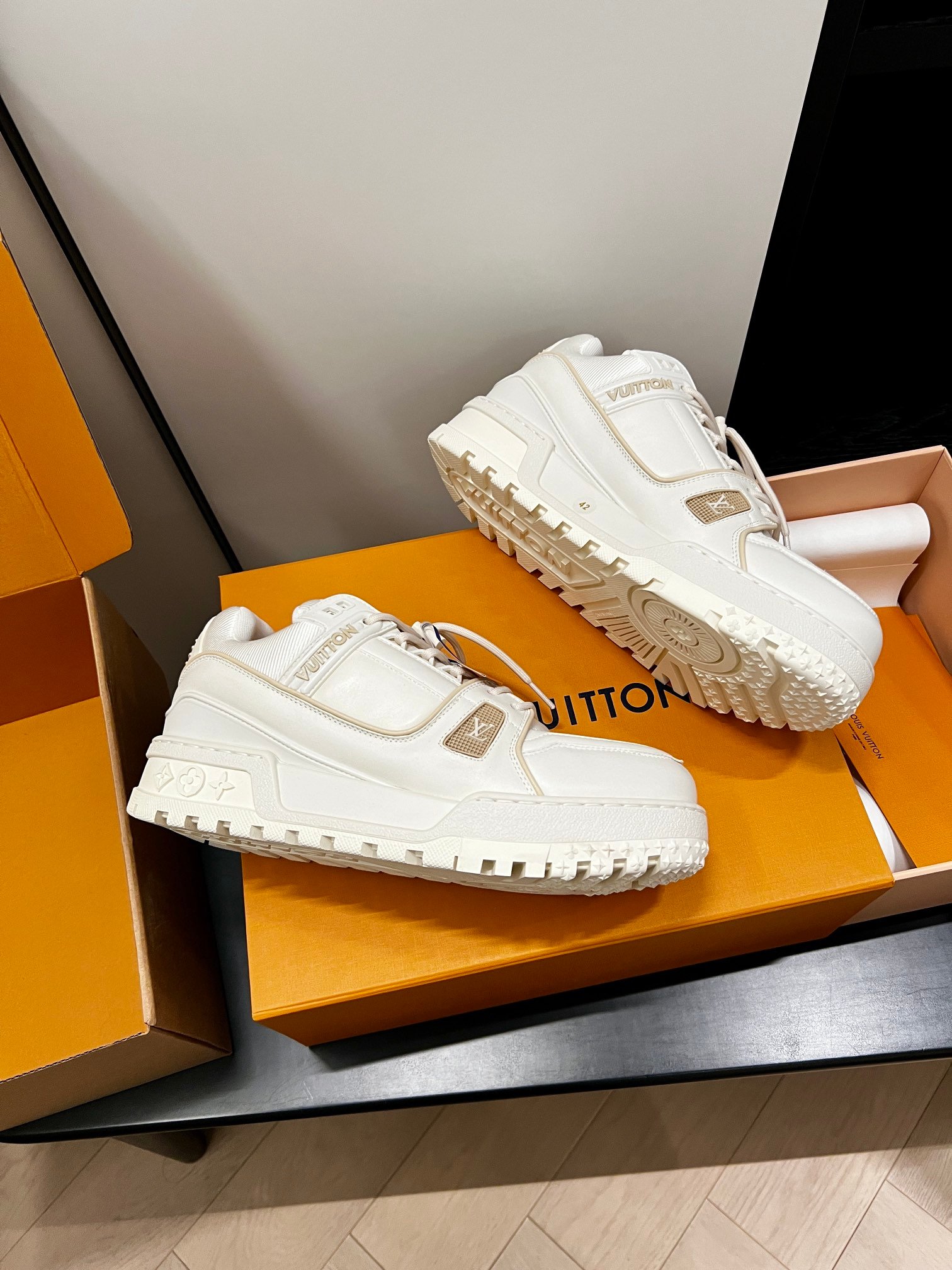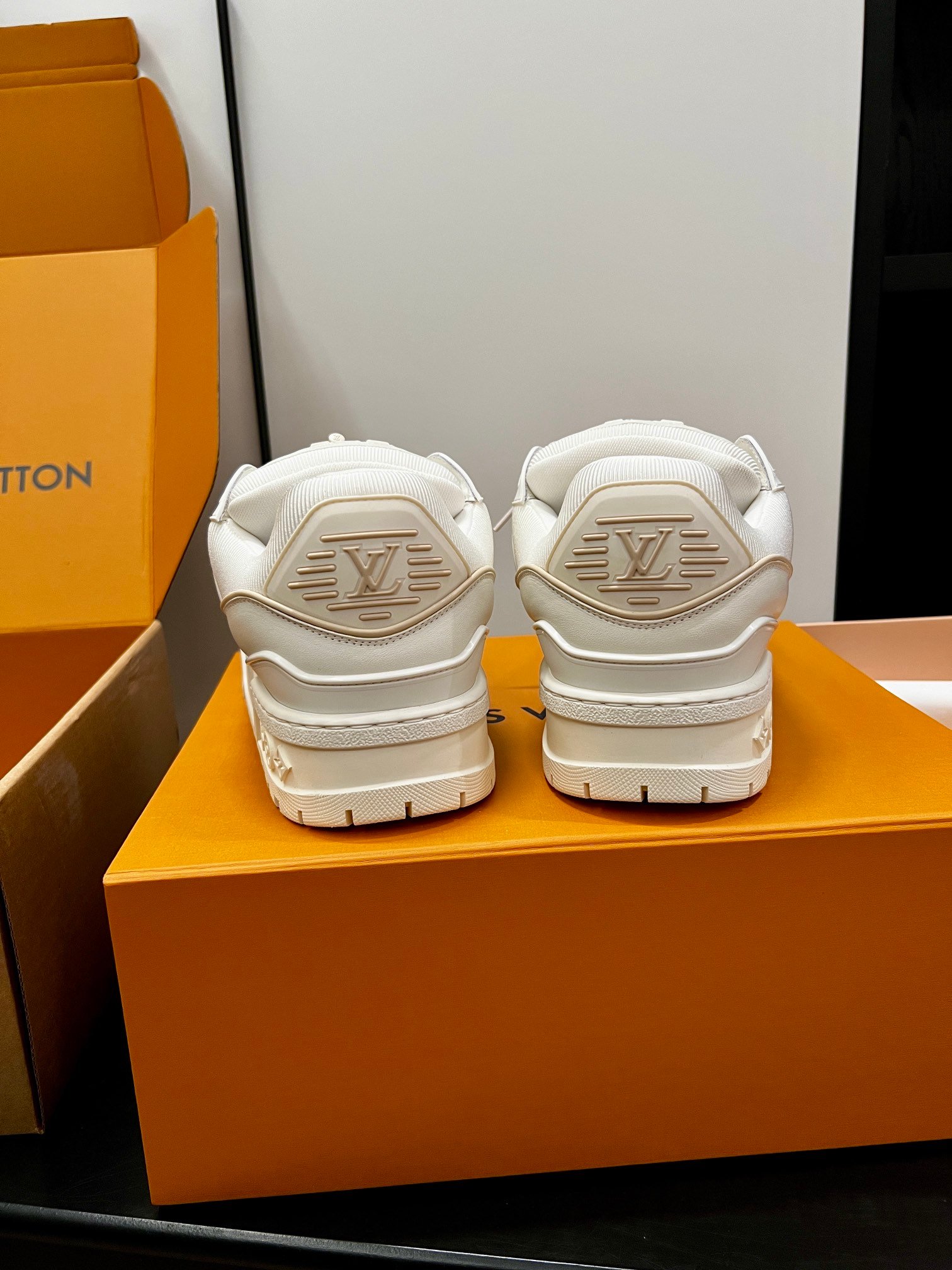 Louis Vuitton Spring Collection runway outfit inspiration: Does the “extra-large” LV Trainer look cooler? #Top version, invincible, exclusive custom model with high-cost crafted shoe embellishments, genuine chunky “fat” exclusive DIY shoe fun!! [Genuine anti-counterfeit chip]
